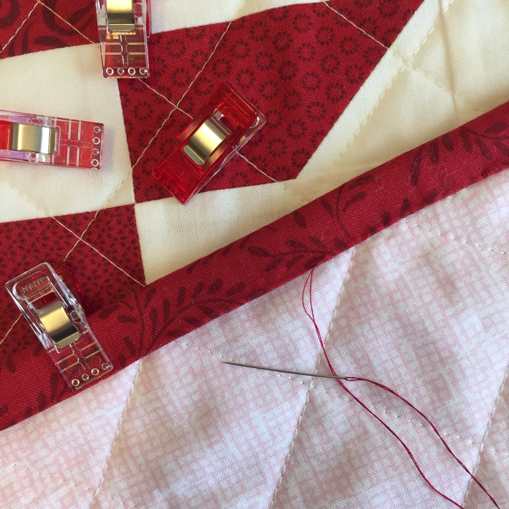 Lately I’ve been sewing on my bindings by hand. I find it relaxing and I like how it looks better than machined.