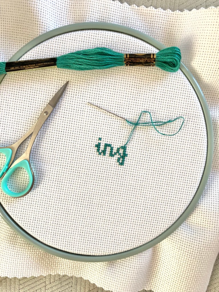 The first in the series has 12 different terms, stitched in 12 different letterings and colors. It’s as easy as combining your favorite floss colors and making it you.