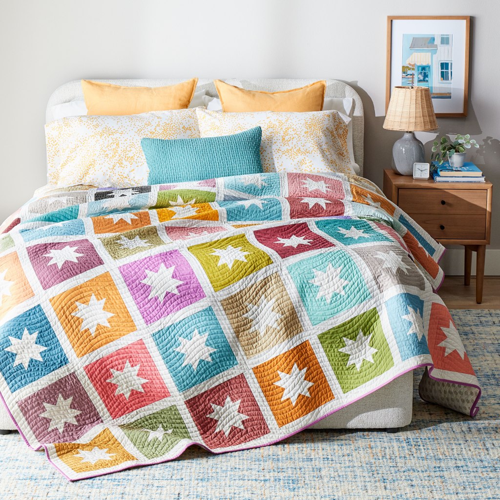 Twinkly Stars is a great pattern for quilters of all levels. The pattern is available for purchase in my Etsy shop. It’s written for 5 sizes: baby, throw, twin, full and queen. Definitely a fun make and a great stash buster too!