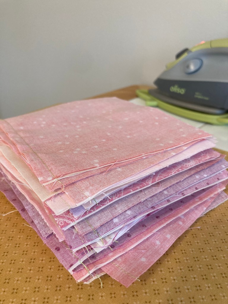 Due to the simple nature of patchwork, I pressed and laid out pairs. Also a very fun step.