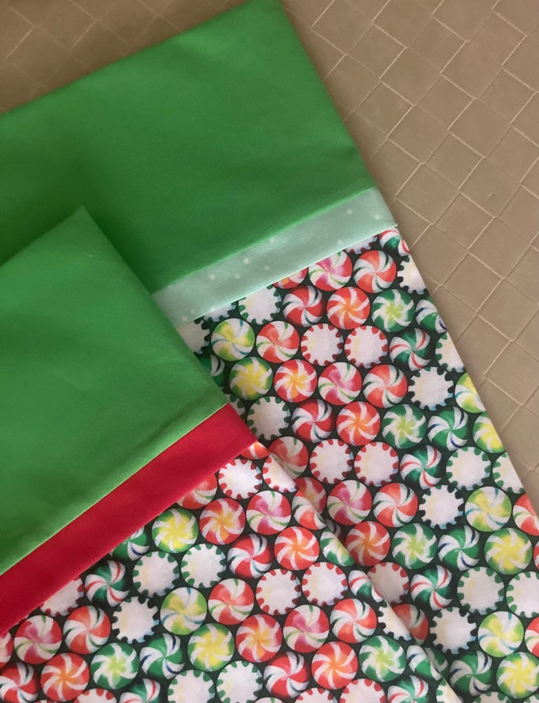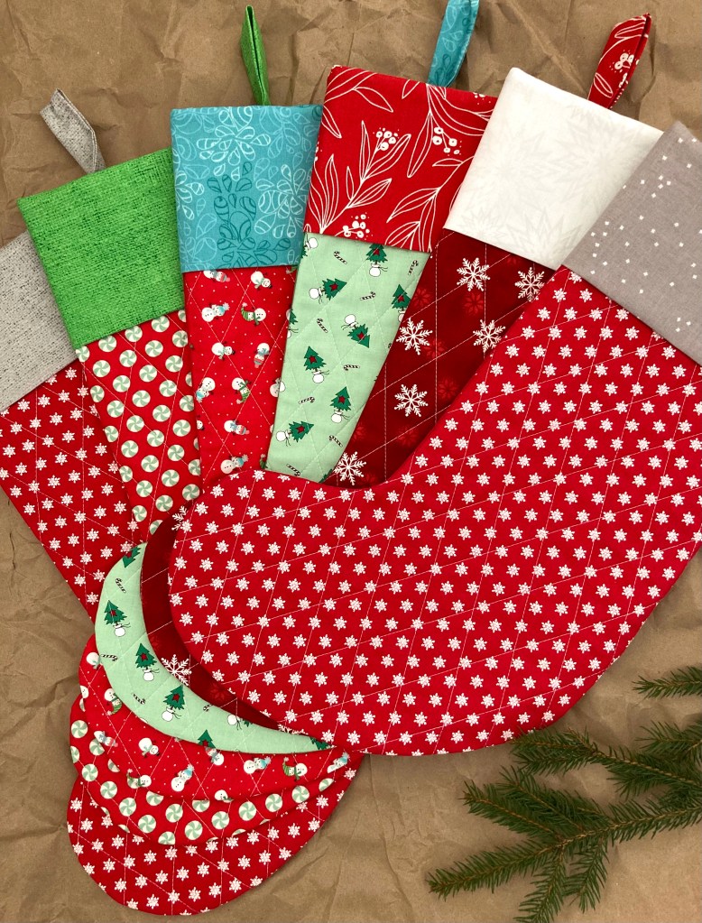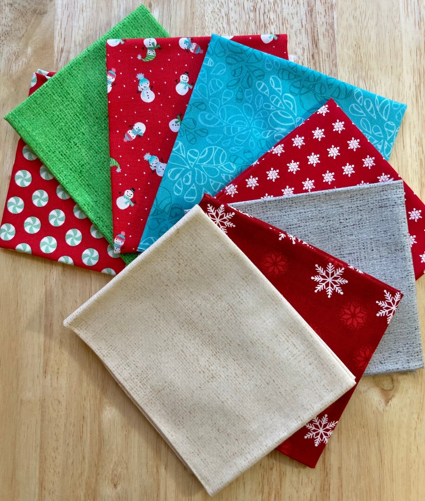 The backing is a really fun print called Frosty Merry Mints by Wilmington Prints. I just love these snowman gents! The quilt top fabrics are Bella Solid White and Moda’s Merry Little Christmas by Bonnie and Camille.