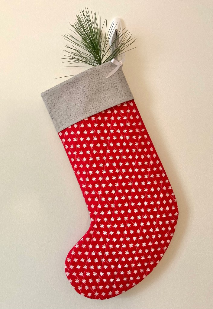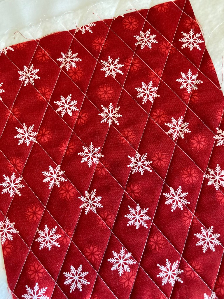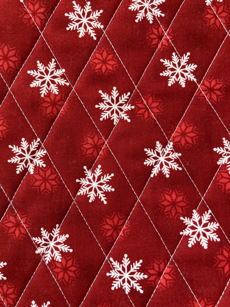 As I normally do, I had it quilted with thread that blends into the background; in this case, white. The edge-to-edge quilting motif is Becker’s Winter Wonderland by Urban Elementz.