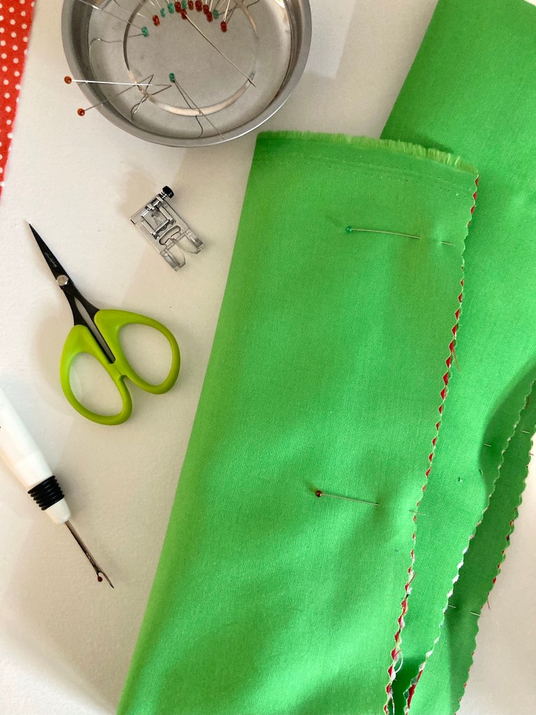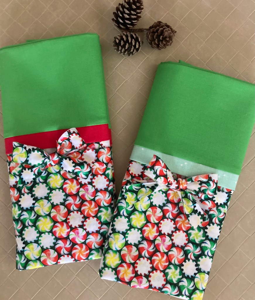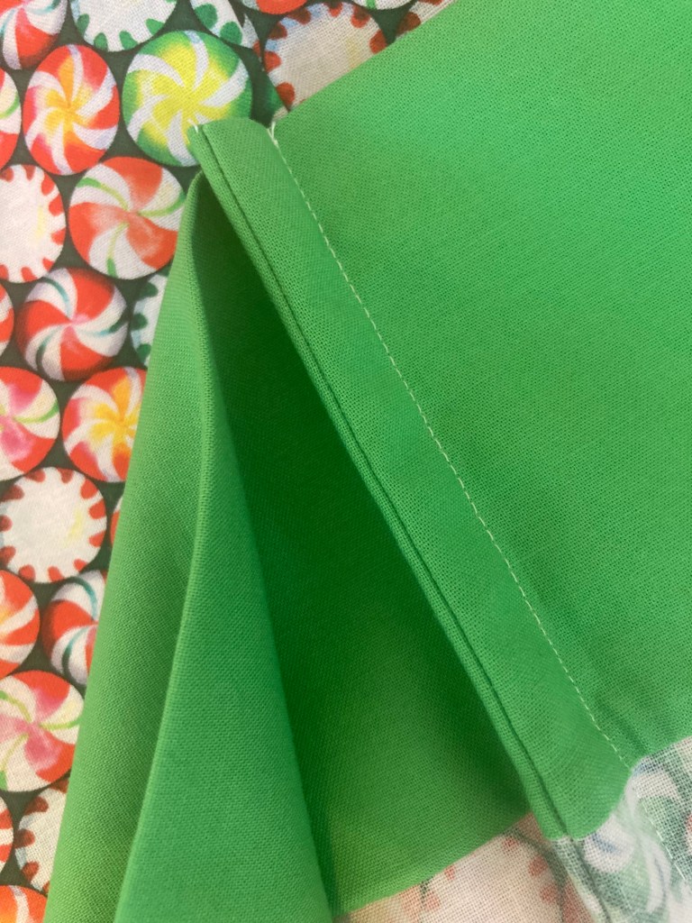 Because this pattern is designed for 2 1/2″ strips, I used strips from the jelly roll for the binding. It’s a nice transition from print to print, which coordinates well with the stripey trees.
