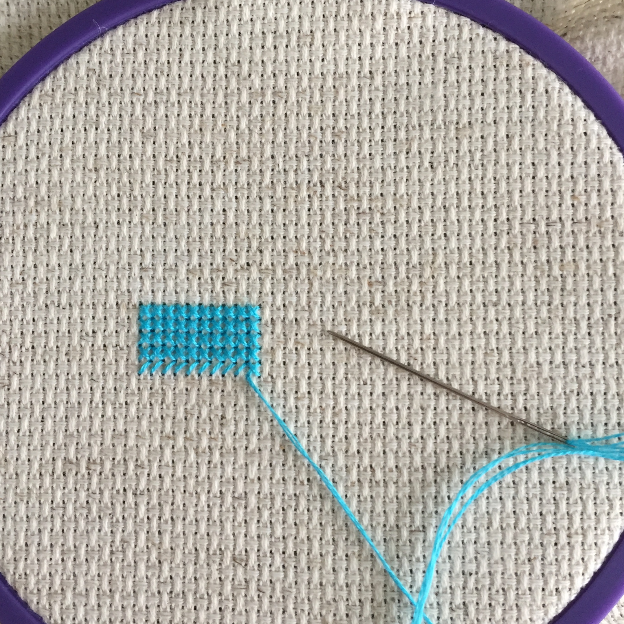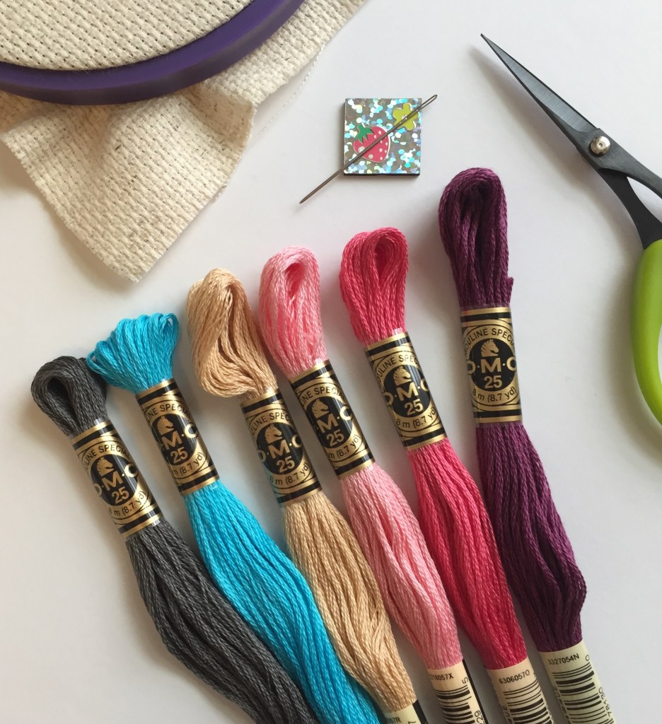 That said, I made a quick trip to JoAnn Fabrics, picked up some supplies and started again. I was happy to see a skein of DMC floss is only 56 cents! Still affordable.