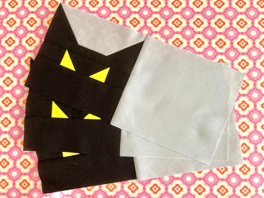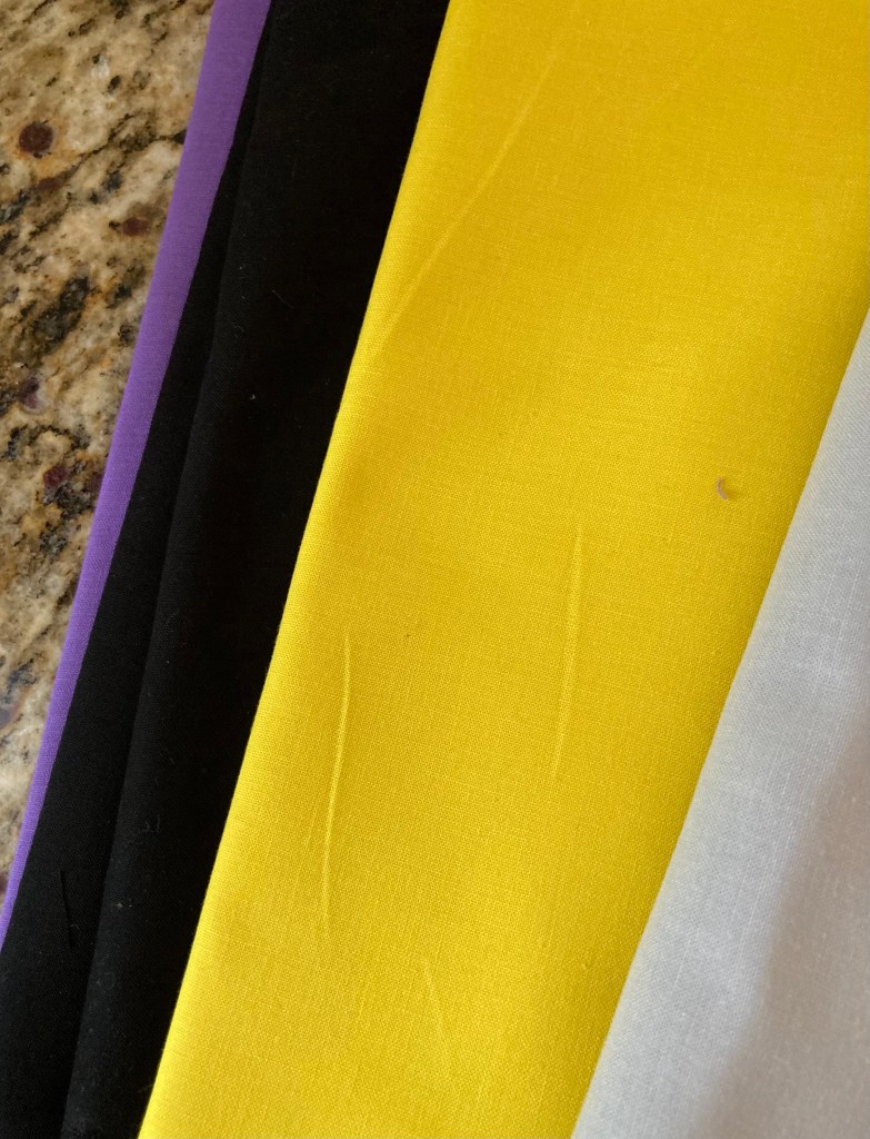 The pattern is designed for fat quarters, yet yardage works too, so I used both. I needed more than pictured above so I purchased a fat quarter bundle of New Century Solids by Andover Fabrics, and it is gorgeous!