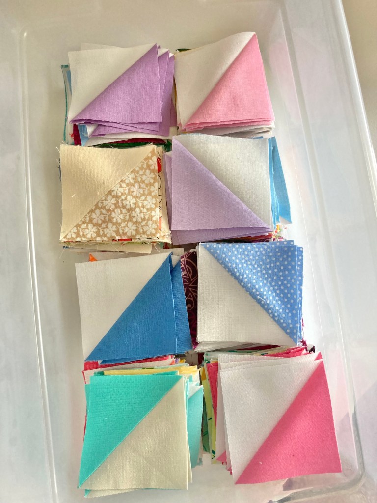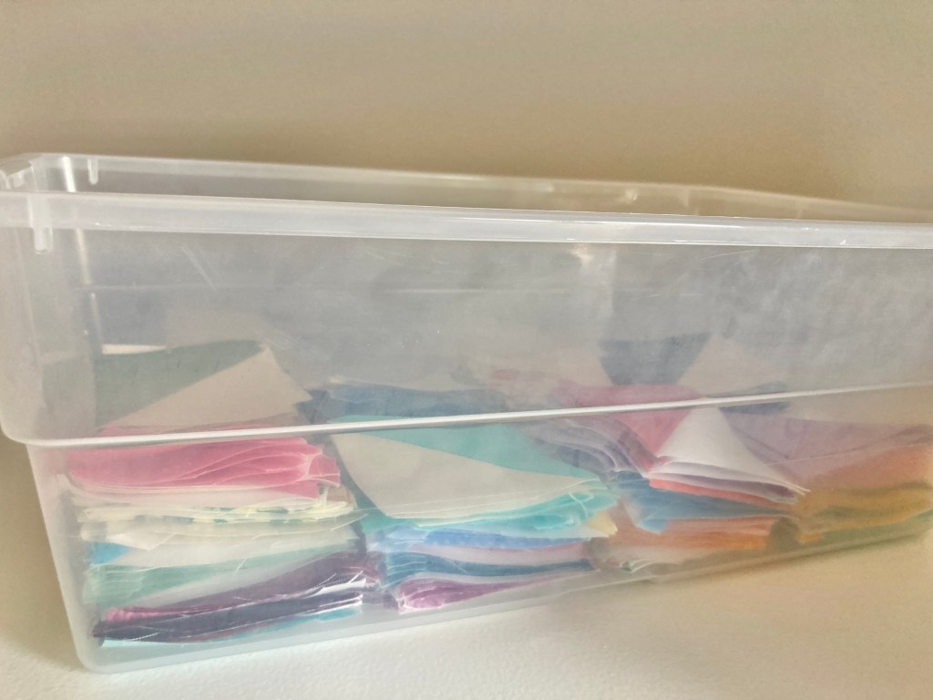 Since there was quite a bit, I didn’t cut and make all the blocks at one time, I did them in batches of 5 or 6 stars.