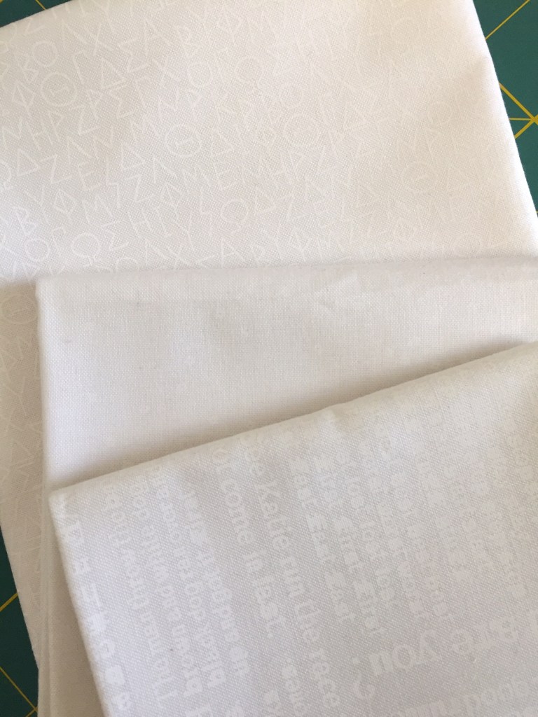 While I had a several white tone on tone fabrics cut into 2 1/2″ squares, I had larger pieces I needed to cut as I went long. EQ determined the quilt needed about 9 yards of background fabric altogether. Again, a lot! I knew I didn’t have enough on hand, so towards the end I’d pick up or order random fat quarters, 1/2 yard and 1 yard cuts to keep a wide variety of fabrics throughout the quilt.