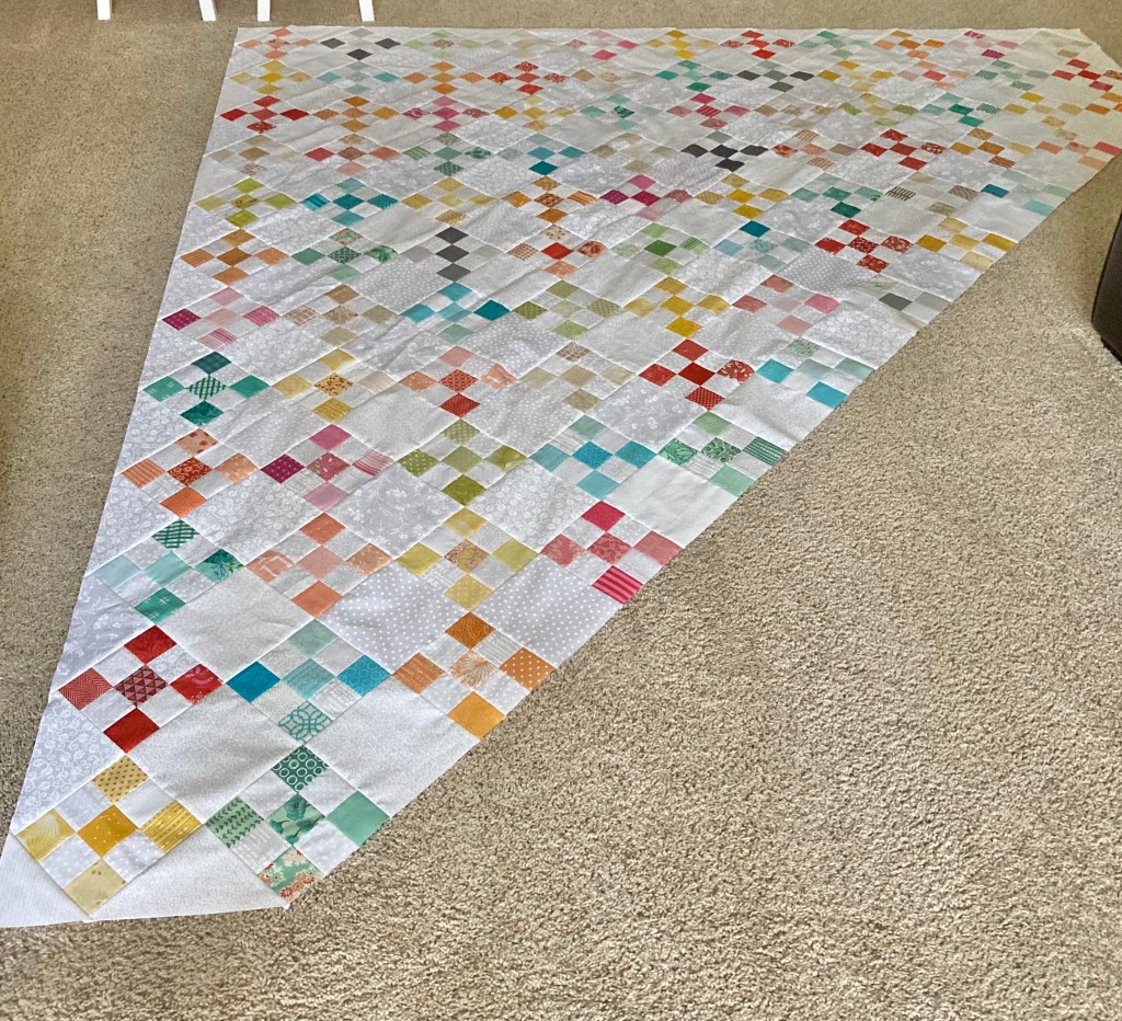 Here’s a look at the quilt top, pressed and ready for longarming.