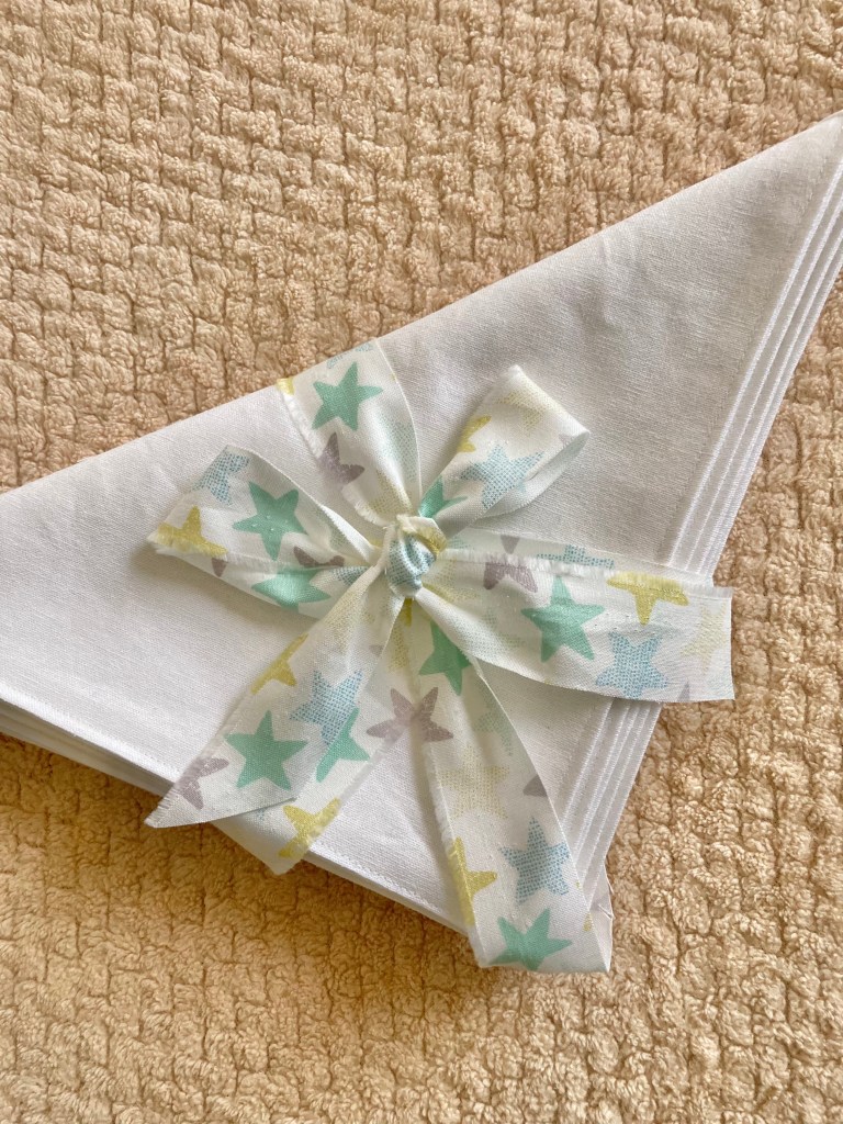 Other gifts I’ve dressed up by using selvage is table napkins made for my kids. When I completed this set I wrapped it with selvage and tied a pretty bow. I think it classes up the bundle and makes a nice presentation.