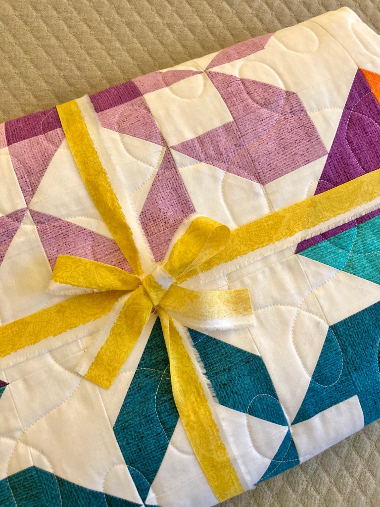 Lastly, my Pinwheels Galore finish! I started this in 2022 as a quilt with no timeline. I finally got it pieced and ready for longarming in the spring of 2023. For no good reason, I didn’t send it out until late summer and finished it in late fall.