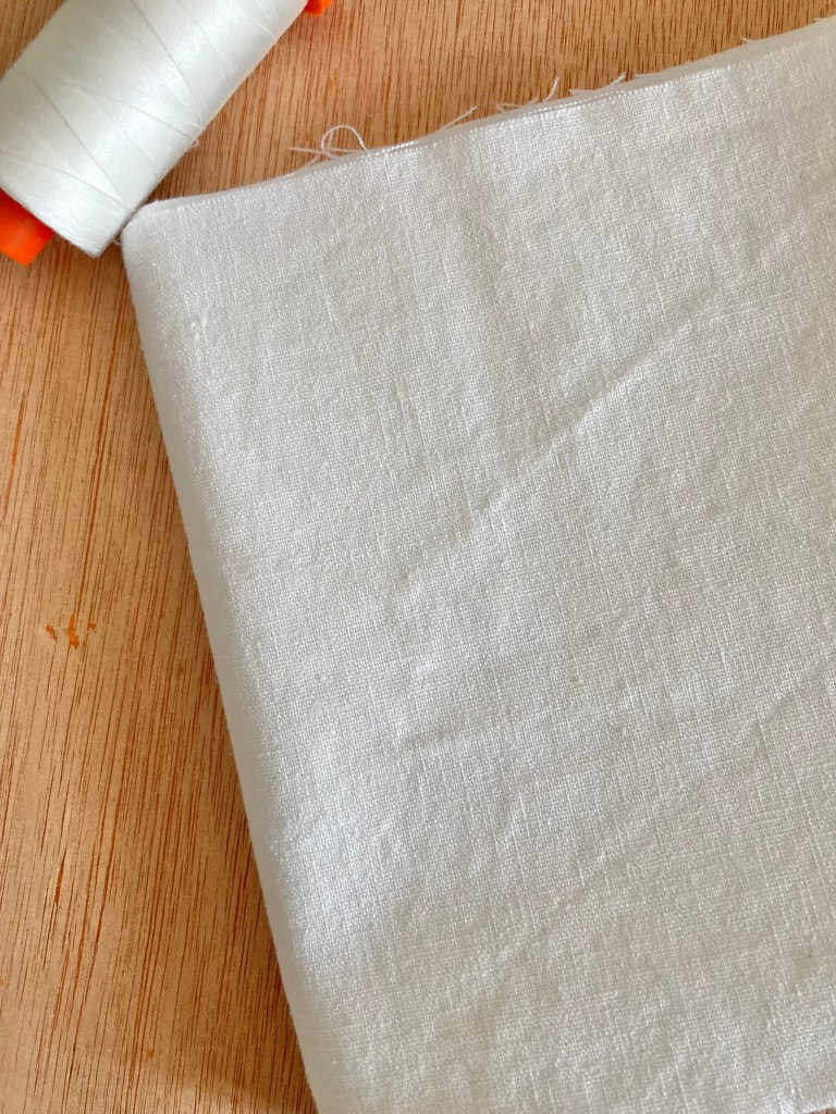 What I didn’t have was a table runner. My first thought was ‘What could I make using what I have?’, then remembering I’d stashed a narrow piece of white Essex Linen leftover from making napkins. Perfect!