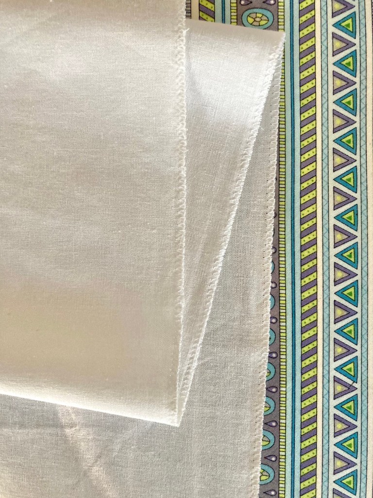 To prevent seams from showing through to the front, also to give more loft, I ironed on Pellon Fusible Fleece 987 for a smooth finish.