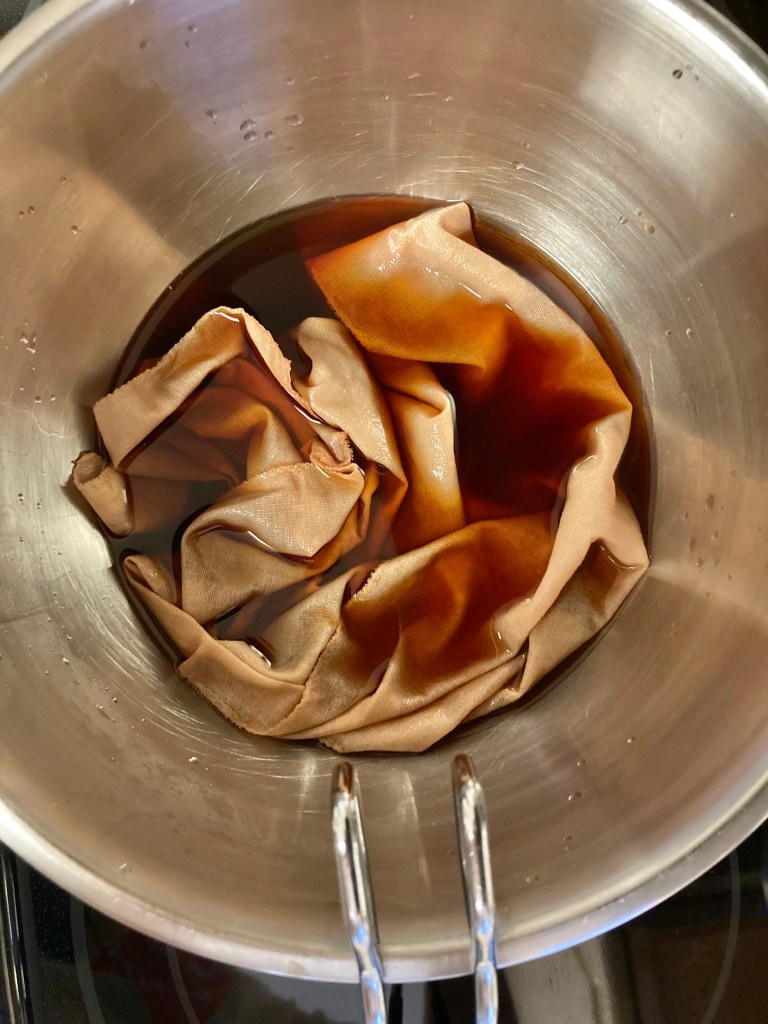 Once it’s the color you want, remove and rinse with cold water. I gently rolled mine in a towel to remove the excess water. After unrolling and smoothing it flat, I placed it in the sun until dry.
