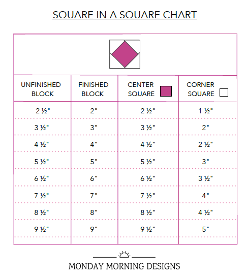Making square in a square blocks? Save time figuring out the math, it’s all right here.