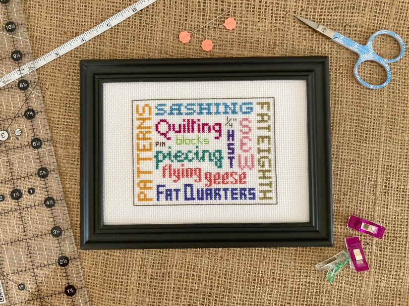 If you’re a quilter and a cross stitch enthusiast, combine both hobbies and create your own quilting terminology work of art.
