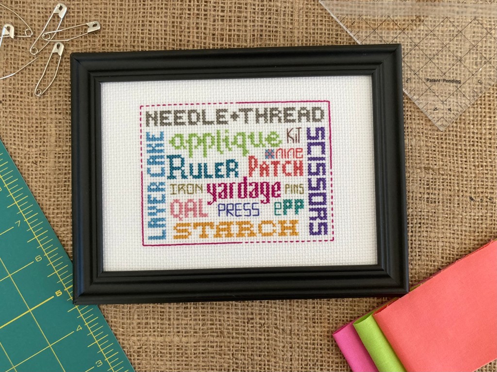 f you’re a quilter and a cross stitch enthusiast, combine both hobbies and create your own quilting terminology work of art.