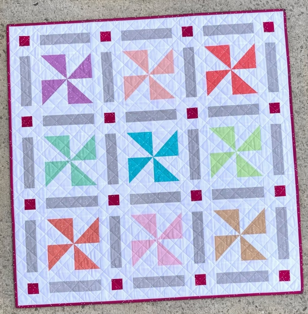 Pinwheels Galore is a beginner-friendly pattern that goes together quickly as it’s designed for both strip piecing and chain piecing.