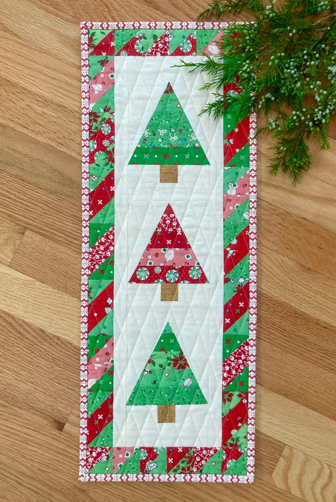 Add a touch of whimsy to your holiday décor with this festive Wee Three Trees mini quilt. Not only is it 2 ½” precut strip or scrap friendly, it’s a fun and quick project.