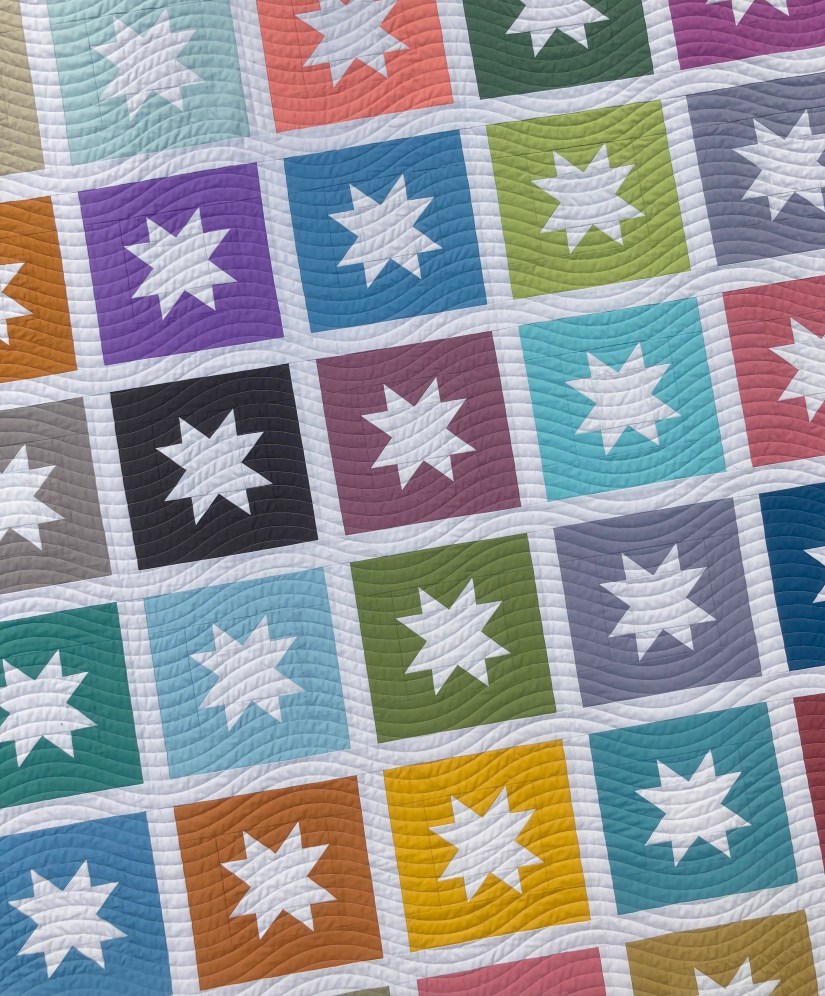 Stitches and Stars is a fat eighth friendly pattern showcasing the sawtooth star block within a stitched motif sashing.