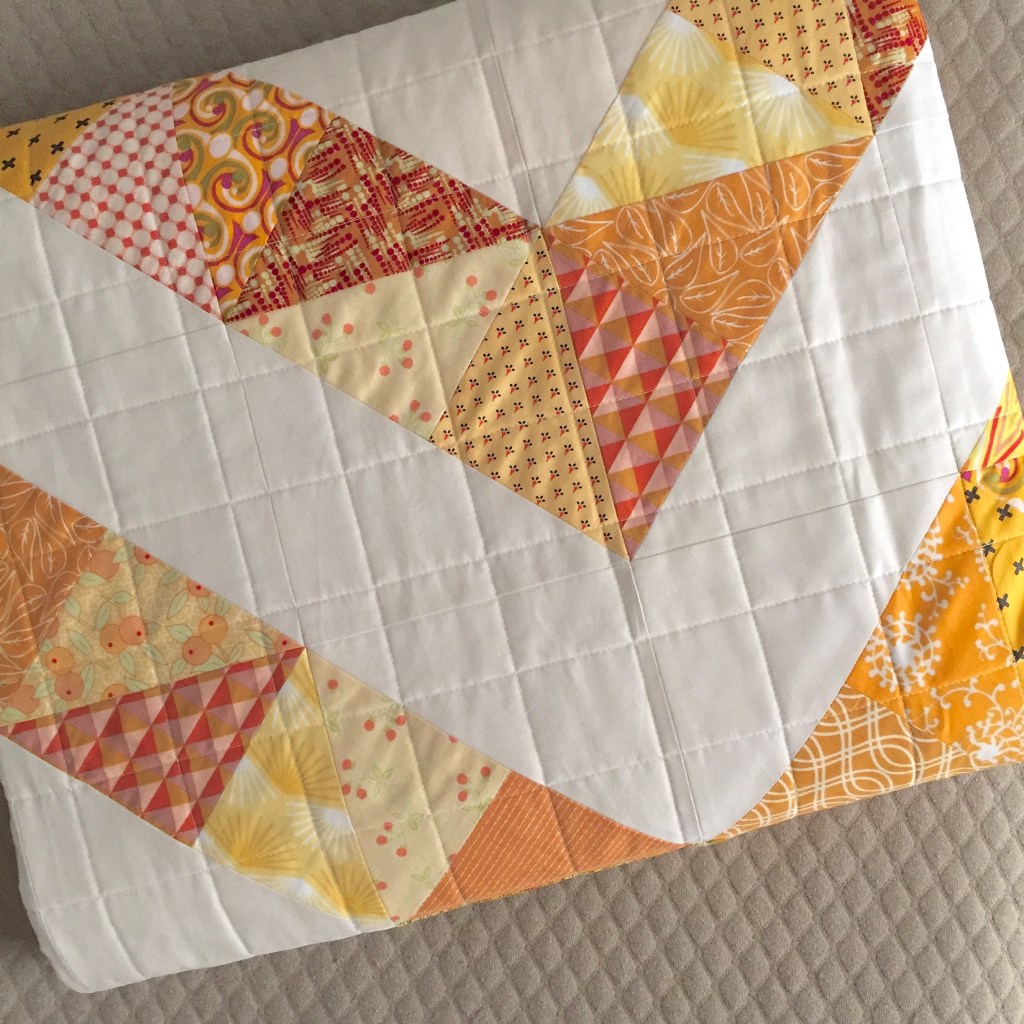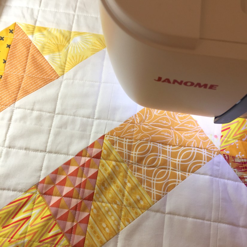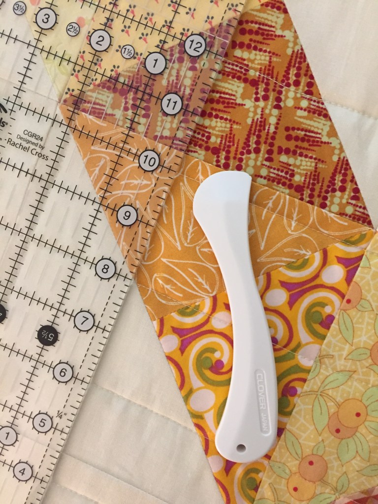 I thought quilting a grid would balance out the triangular points nicely, so I used my hera marker and quilted lines every two inches.
