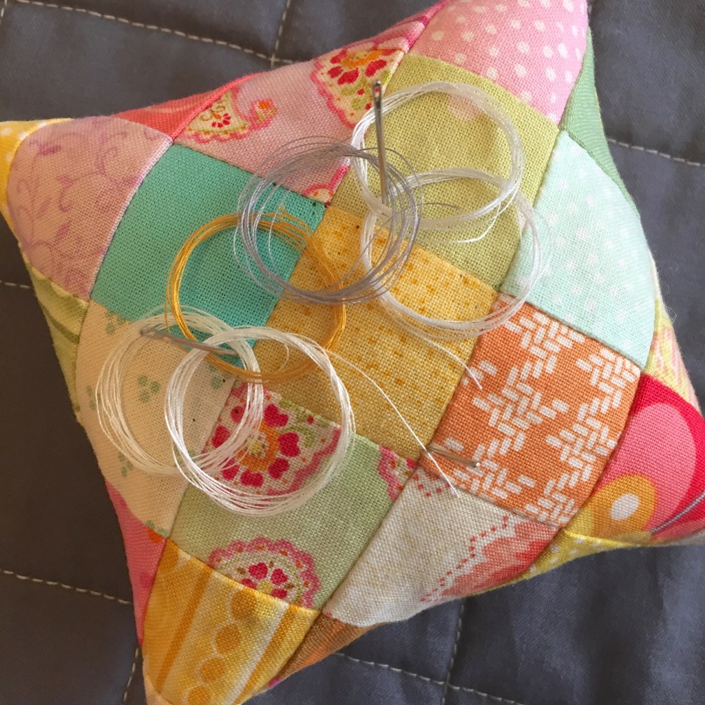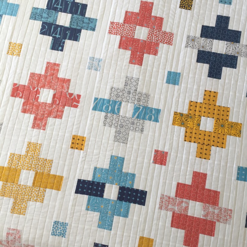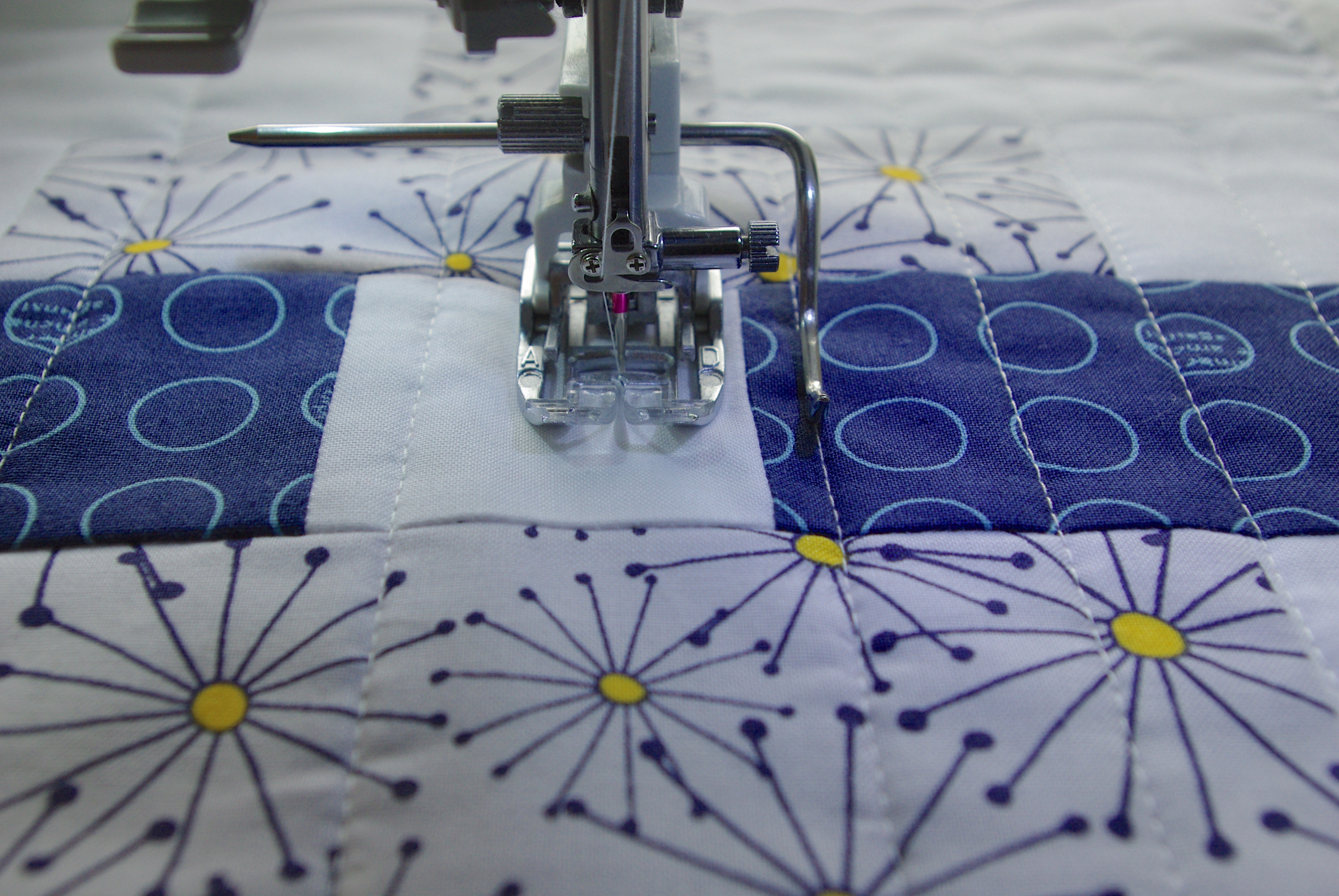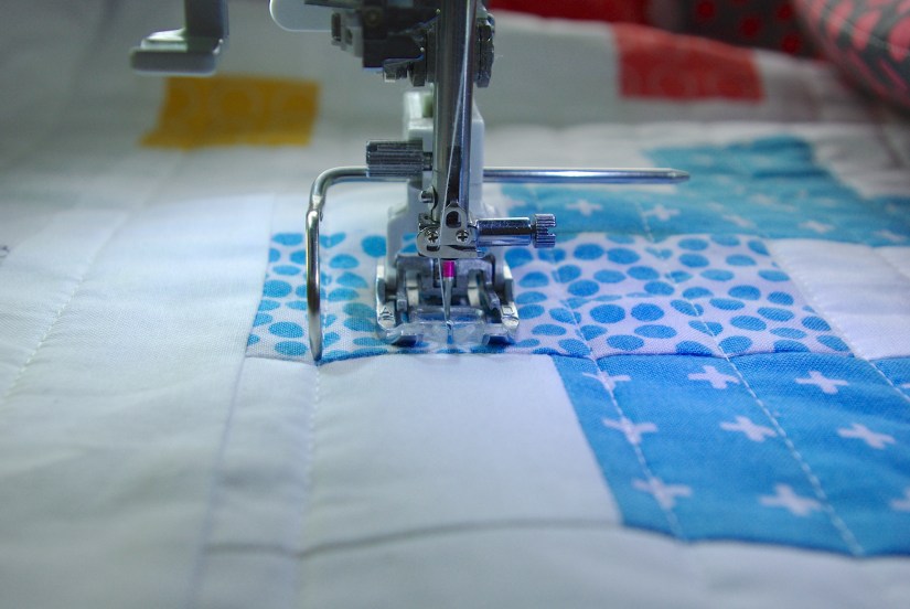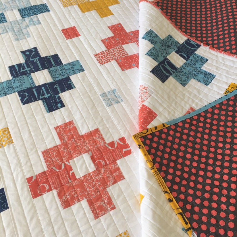 As I normally do, I had it quilted with thread that blends into the background; in this case, white. The edge-to-edge quilting motif is Becker’s Winter Wonderland by Urban Elementz.
