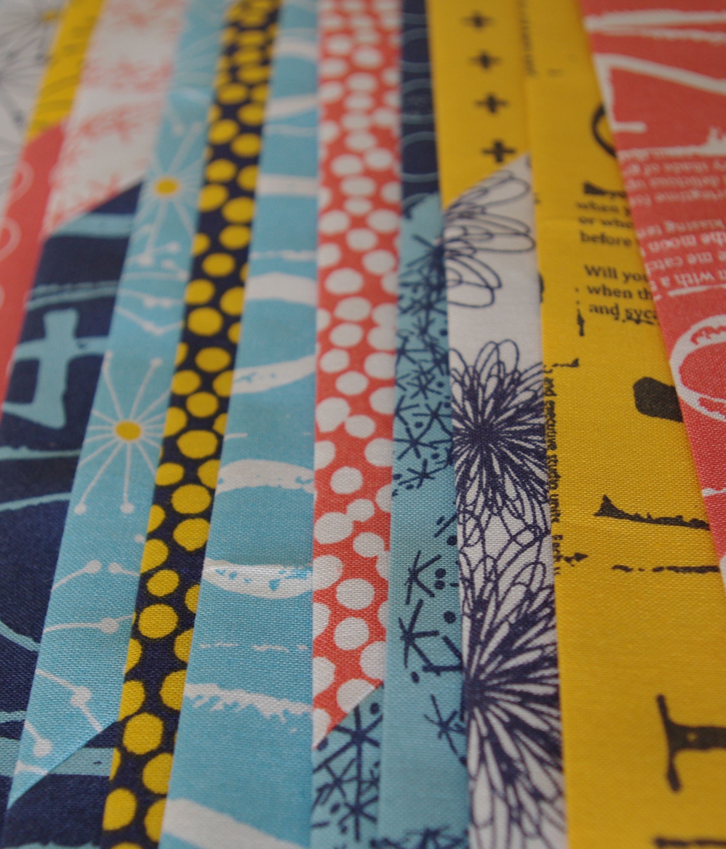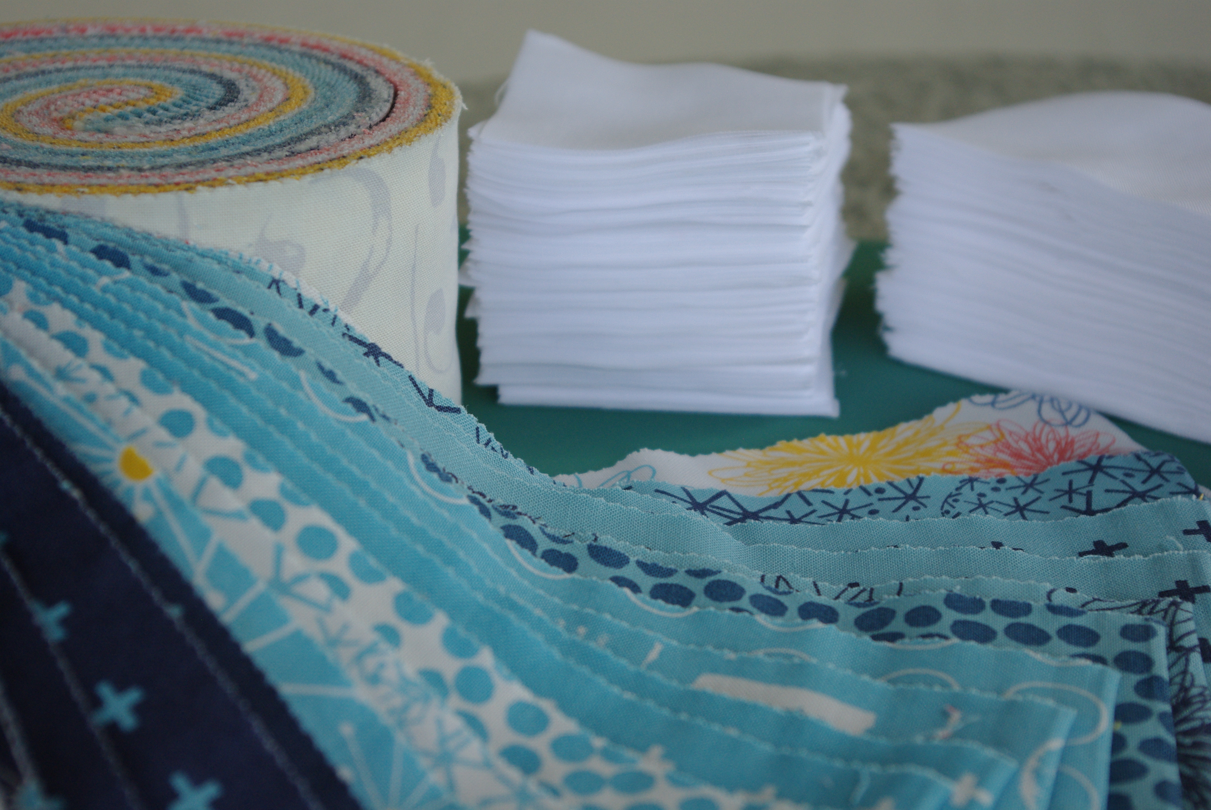 Because this pattern is designed for 2 1/2″ strips, I used strips from the jelly roll for the binding. It’s a nice transition from print to print, which coordinates well with the stripey trees.
